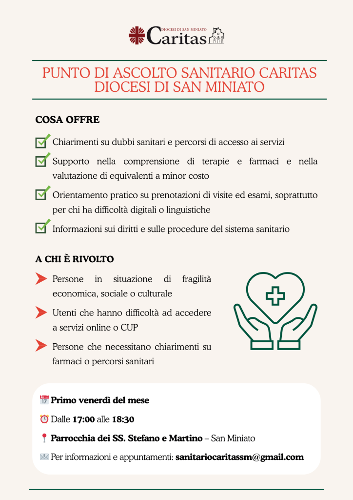 Per informazioni e appuntamenti si può scrivere a sanitariocaritassm@gmail.com.
